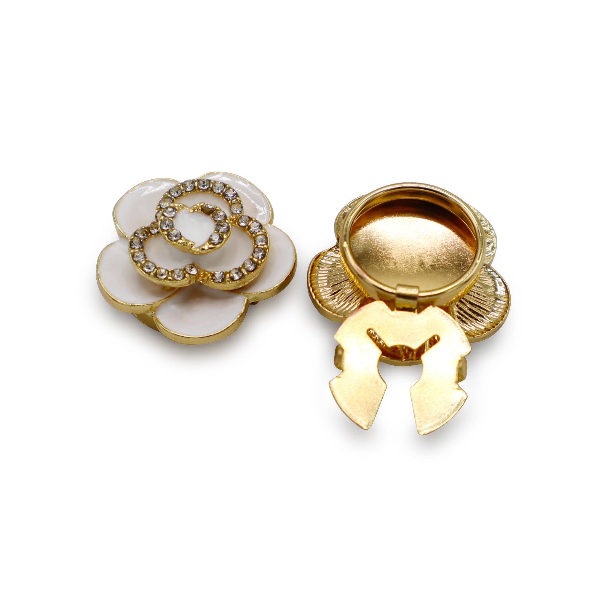 Befestigen Sie sie über Ihren vorhandenen Knöpfen, um eine schlichte Bluse in einen einzigartigen, gepflegten Look zu verwandeln. Wiederverwendbar, leicht und so gestaltet, dass sie auffallen